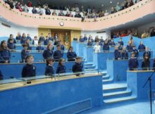 Alumnas y alumnos de cuarto grado del Instituto María Auxiliadora, de Viedma, llevaron adelante hoy la Promesa a la Bandera, en el recinto de la Legislatura. La delegación