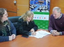 El vicegobernador Alejandro Palmieri, junto a la presidenta del Concejo Deliberante de Guardia Mitre, Alicia Maciá, y la vicepresidenta, Rocío Núñez, firmaron hoy un convenio de colaboración para